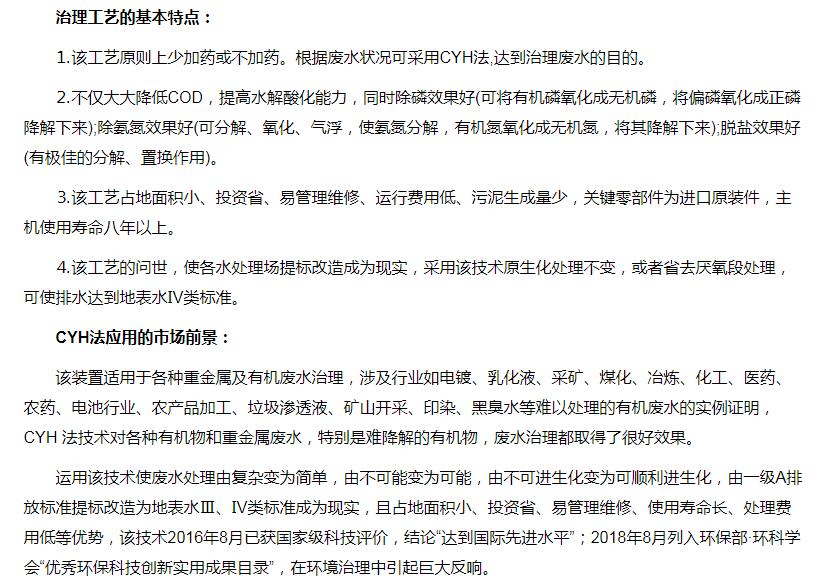超強(qiáng)氧化還原廢水處理裝置(CYH法)處理各種有機(jī)廢水、各種重金屬?gòu)U水