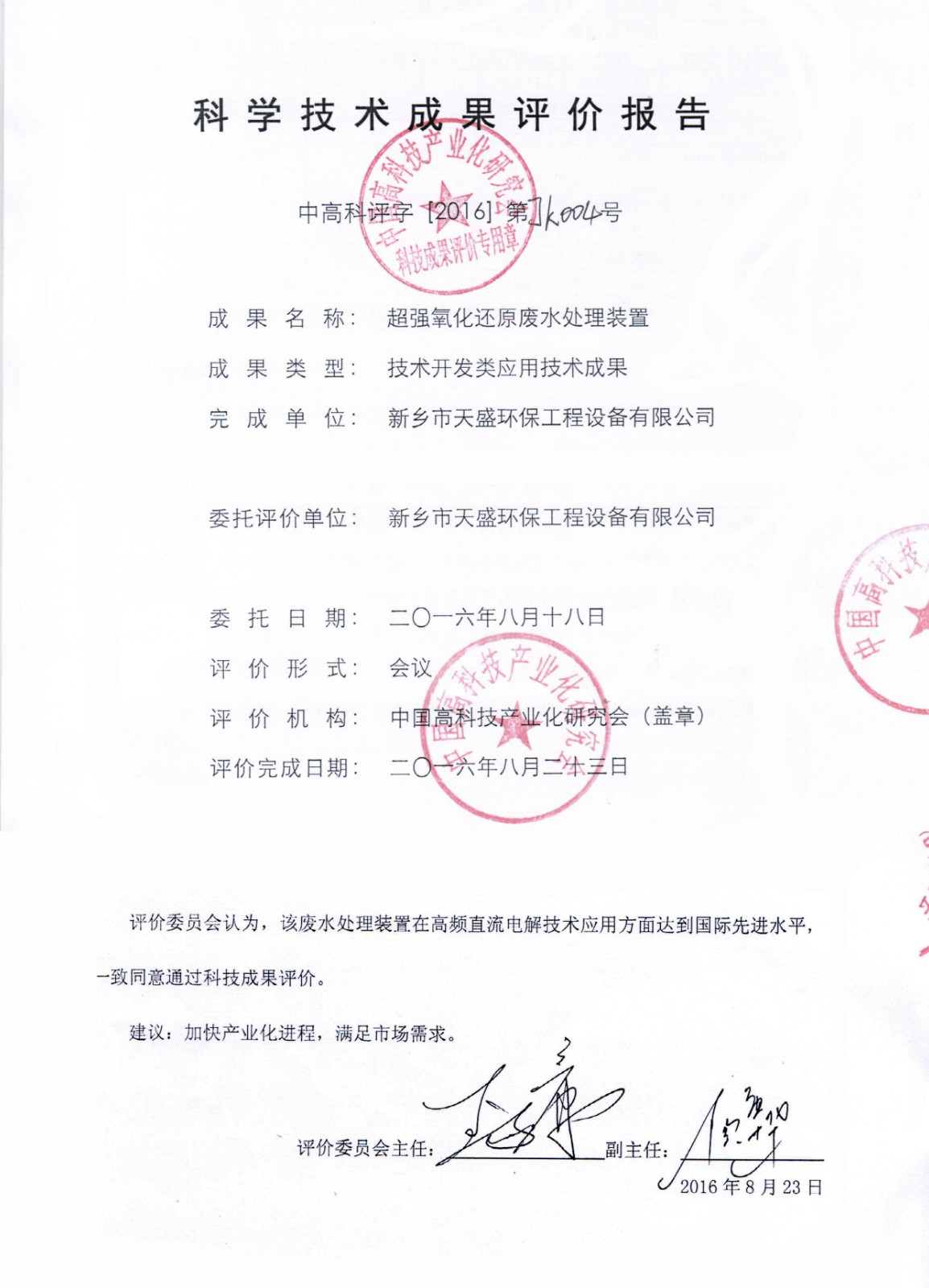 中國(guó)高新技術(shù)網(wǎng)發(fā)布:《關(guān)注:解碼科技創(chuàng)新》——新鄉(xiāng)市天盛環(huán)保“超強(qiáng)氧化還原廢水處理技術(shù)”