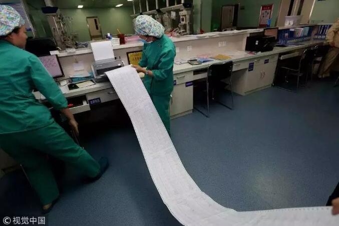 2016年12月30日,河南洛陽。20歲少女患重病住ICU一年,欠費賬單100多米長。
